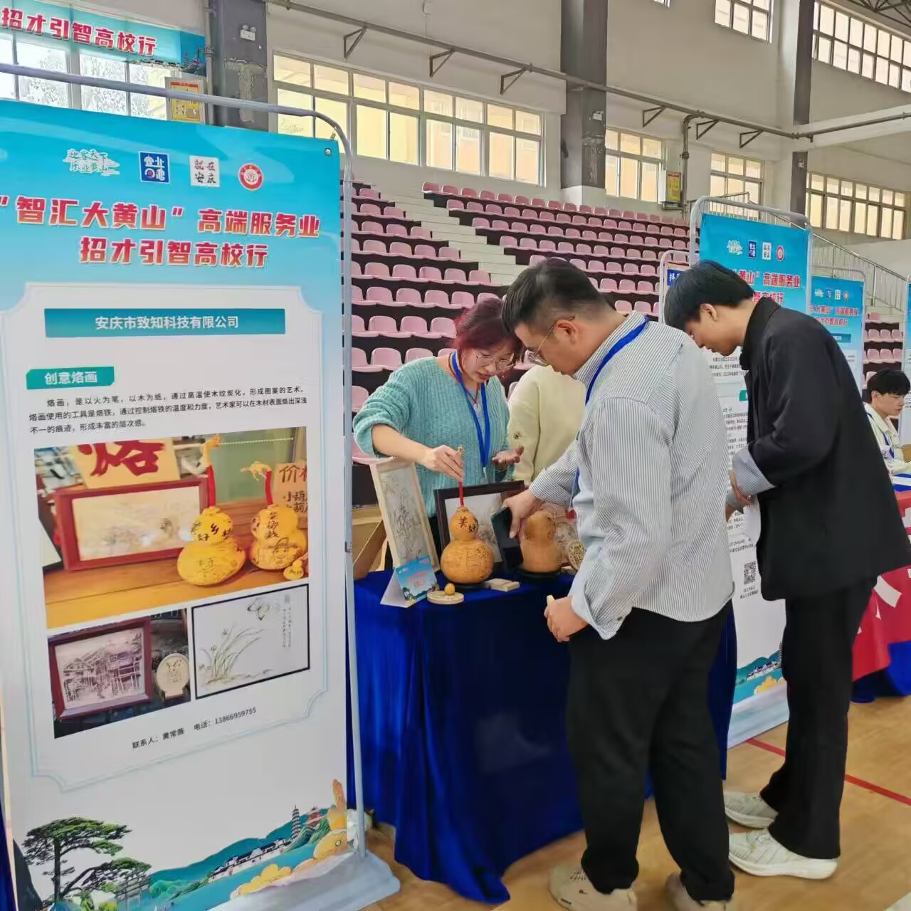 10月16日,英国365集团公司应邀参加由黄山市人力资源和社会保障局主办的“智汇大黄山”高端服务业招才引智系列活动。该院数名学生走进安徽外国语学院进行非遗烙画的科普宣传活动。他们将所学付诸实践,进行非遗烙画的科普宣传活动。