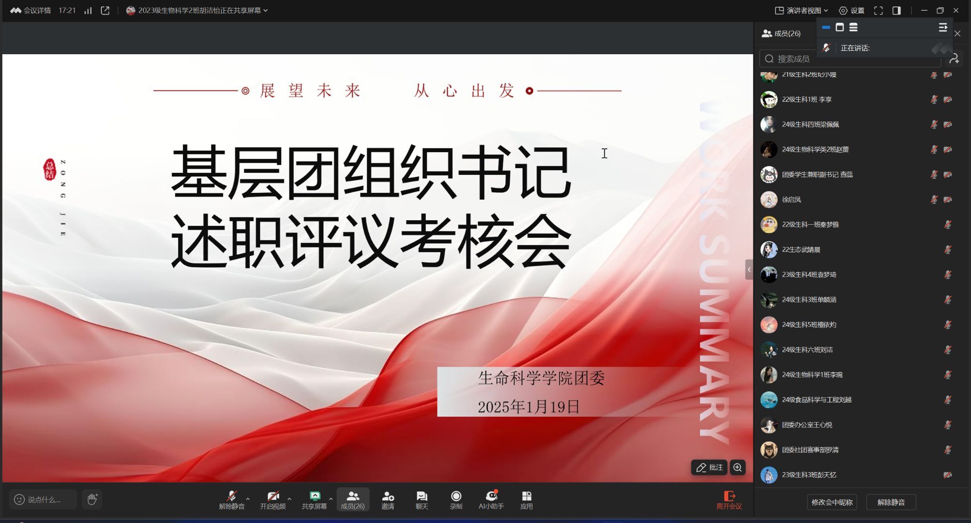 1月18日,英国365集团公司在线上召开2024年度基层团组织书记述职评议考核会,对2023级各班团支部进行现场述职考核,进一步推动基层团组织的组织力、引领力、服务力和大局贡献度协同提升,各班团支书及团委负责人徐启凤参加会议。