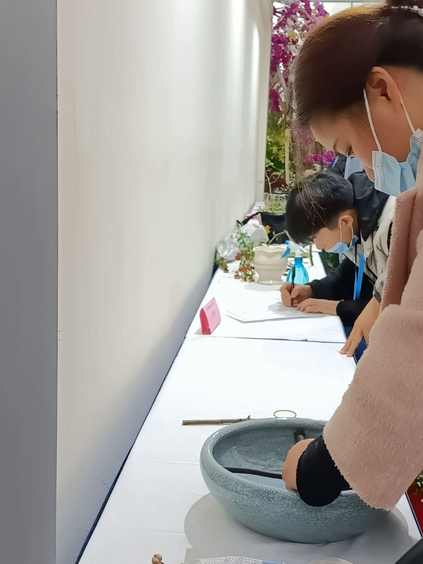 插花大赛为花卉博览会的内容之一,参赛者主要有安徽省各地花友会成员及相关高校优秀插花组。赛前准备,气氛火热,大家精心挑选自己所需的花材,热烈讨论,深入交流。比赛内容为即兴插花,利用现场提供的花材,自我构思主题,插出心中最美的花。经过近两个小时的忙碌,我院师生共完成十余件作品,获得 银奖一枚,优秀奖十枚。其中宗梅老师的《池畔》、张云龙同学的《冬去春来》令花友啧啧赞美,给评委留下了深刻印象。