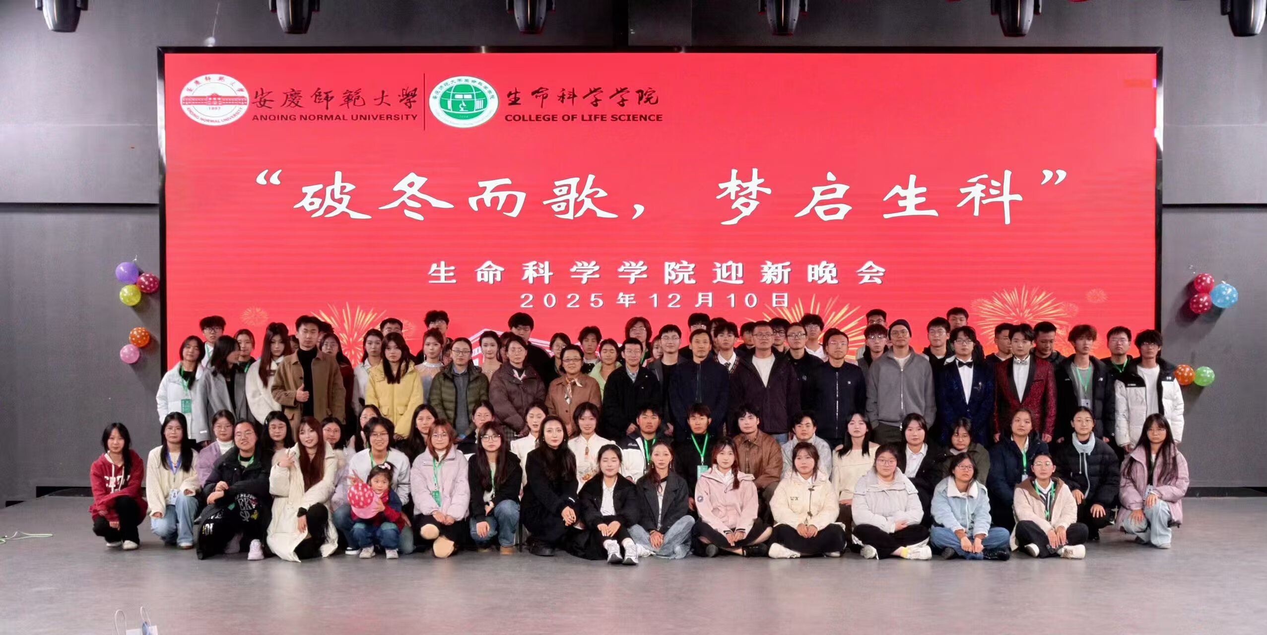 晚会尾声,师生们共同合唱歌曲《夜空中最亮的星》,张万茂献唱歌曲《朋友别哭》,全体演职人员登台谢幕。本次迎新晚会不仅为学生们搭建了展示自我的舞台,更凝聚了学院向心力,未来,学院将继续创新活动形式,鼓励更多学生从“观众席”走向“舞台中央”,在实践中提升综合素养,让学院的人文温度与集体凝聚力,成为每一位生科学子成长路上的温暖底色。(撰稿:学生记者 张宇蝶 邹紫奕 摄影:学生记者 徐若菡 审核:张万茂)