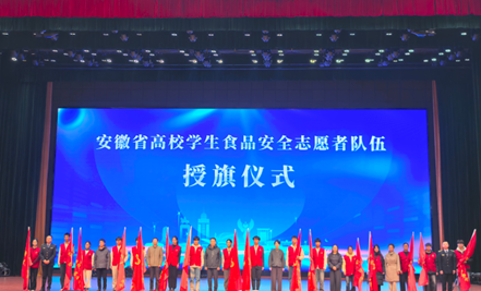 近日,全省高校学生食品安全志愿者队伍成立仪式暨淮南市高校学生食品安全志愿服务活动在淮南市举行,此次活动由安徽省食药安办、淮南市人民政府、淮南市食药安办、淮南市委社会工作部、淮南市市场监管局、淮南市农业农村局、淮南市卫健委联合主办,旨在提升高校食品安全志愿者的专业素养与服务能力,进一步织密校园及周边食品安全防护网。大学生创意食品工艺协会指导老师带领学生应邀参会。