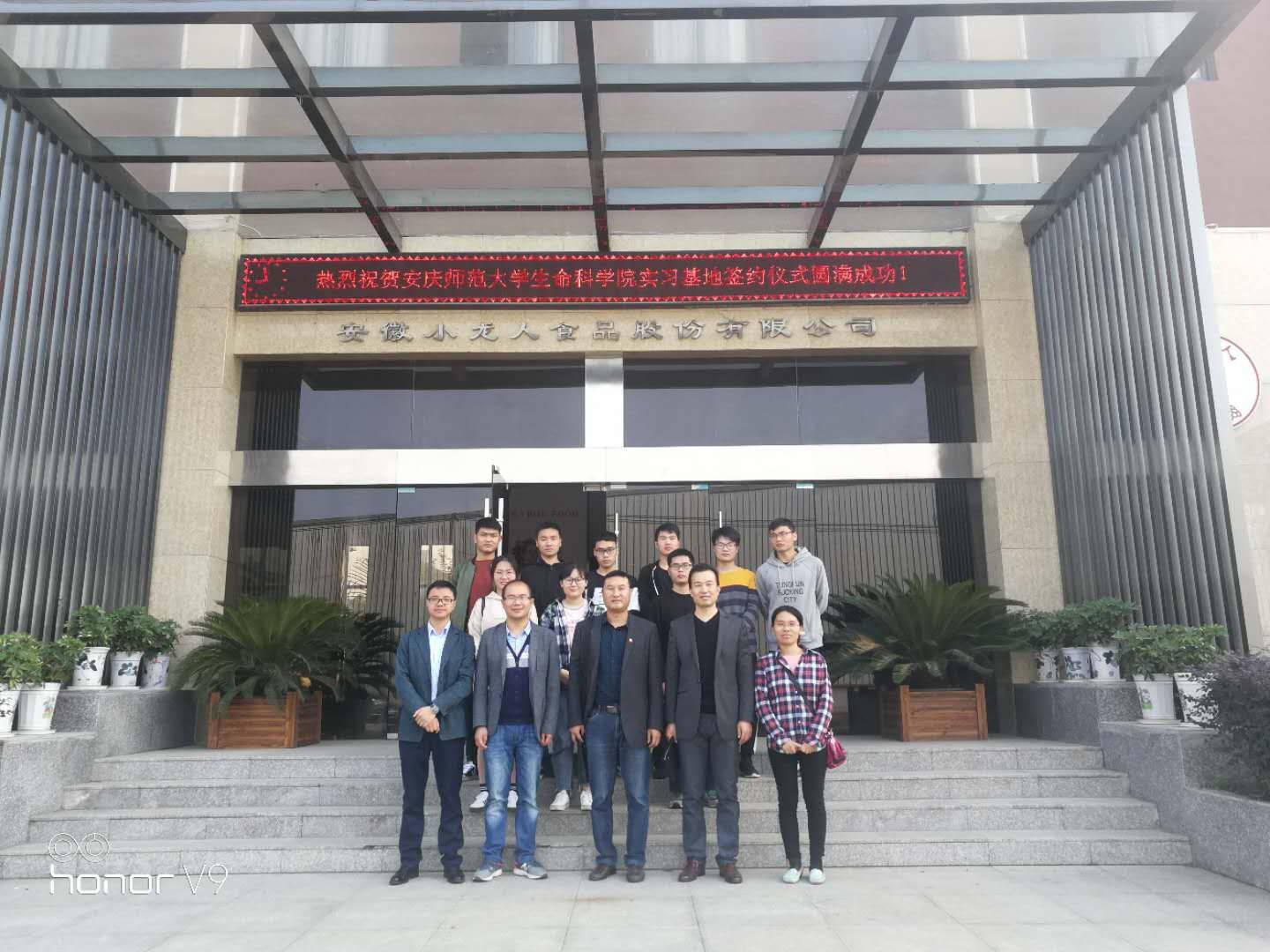 10月17日,英国365集团公司在周多奇院长的带领下,一行5人来到位于安庆本土的安徽小龙人食品股份有限公司,参加了我院与小龙人食品股份有限公司实践教学基地的签约仪式、揭牌和欢送食品科学与工程专业学生赴公司实习事宜。