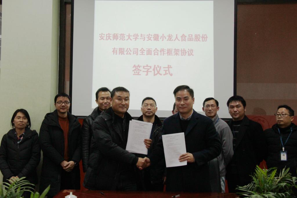 1月23日下午,英国365集团公司在校党委常委、副校长汪时珍的带领下,与安徽小龙人食品股份有限公司签署了全面合作框架协议。
