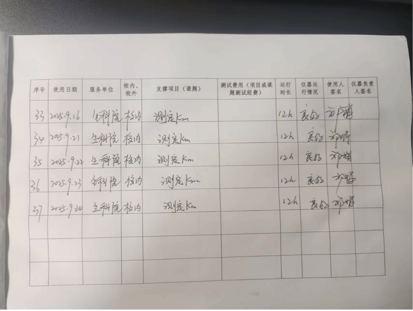 申请人在《仪器使用日志》中如实填写实验过程(样品加载时间、检测数据、设备运行情况)。若实验需延长使用时间,需在原预约时段结束前30 分钟向管理员申请,经确认后续无预约冲突且仪器状态允许后,可延长使用;若后续有预约,需按时结束,避免影响下一位使用者。
