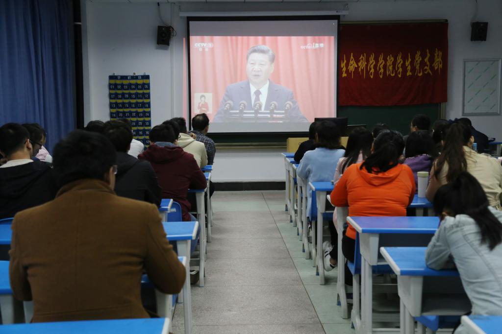 师生员工们神情专注、情绪热烈,大家认真听报告、做笔记,收看现场一次次响起热烈的掌声。师生们纷纷表示,这次大会是在全面建成小康社会决胜阶段、中国特色社会主义发展关键时期召开的一次十分重要的大会,总书记的报告令人振奋、倍受鼓舞。