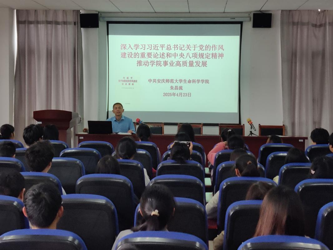 学院党委书记朱昌流以《深入学习习近平总书记关于加强党的作风建设的重要论述 深入贯彻中央八项规定精神 推动学院事业高质量发展》为题向全体教师和部分学生党员作专题党课报告。他分析了党的作风建设的发展历程、重大意义、目标要求、重点任务和路径方法,阐明了中央八项规定精神的内容和实质。他强调,全体党员干部要通过学习教育树形象、正作风、守底线、有作为。学院班子要以更强的规矩意识,做到科学化决策,提高学院治理体系和治理能力现代化水平;要以更实的工作作风,推进重点工作,提升学院核心竞争力;要以更优的服务理念,强化党建引领,凝聚发展的合力。