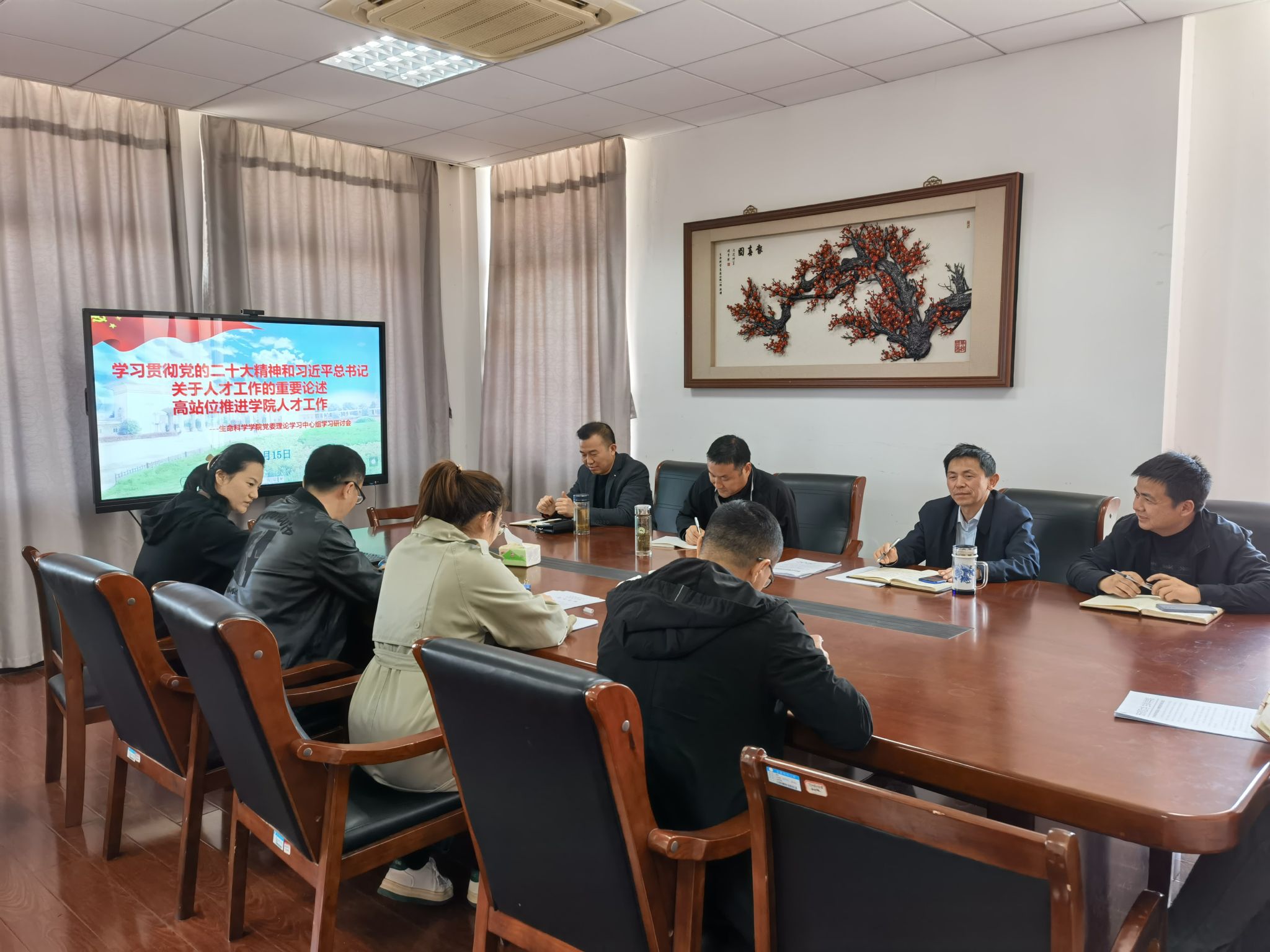 3月15日,学院党委理论学习中心组召开学习研讨会,深入学习贯彻党的二十大精神和习近平总书记关于人才工作的重要论述。中心组成员朱昌流、周多奇、吴彥、张辉、李从虎、张冉冉和青年教师代表宋婧、民主党派代表翟伟参加学习。学院党委书记朱昌流主持会议。