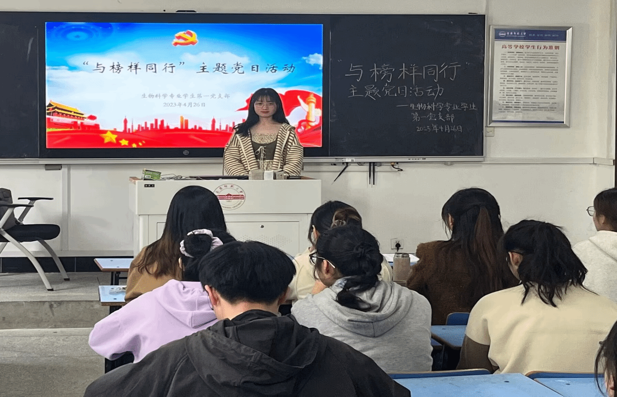 4月26日,英国365集团公司生物科学专业学生第一党支部开展“与榜样同行”主题党日活动, 在五四青年节到来之际,聆听榜样故事,汲取奋进力量。