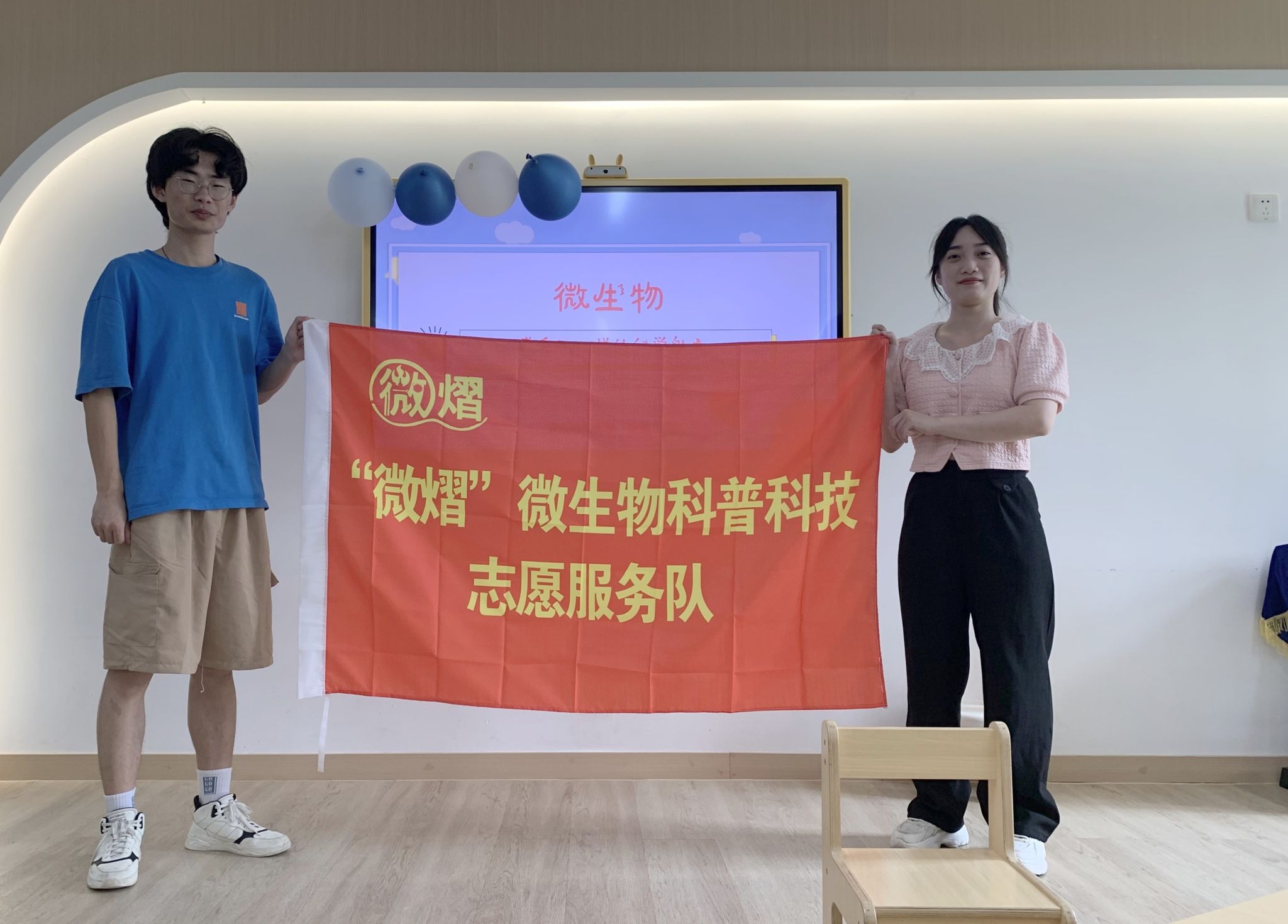 黄祝老师带领的"微熠"微生物科普团队开展了“细菌手印”和“微生物作画”科普活动。让幼儿动手操作“细菌手印”实验,对手上的细菌形成初步的认识,以养成良好的卫生习惯;利用自然界存在的微生物释放的色素为颜料,培养基为画布,进行作画,让幼儿体会微生物神奇烂漫的一面。
