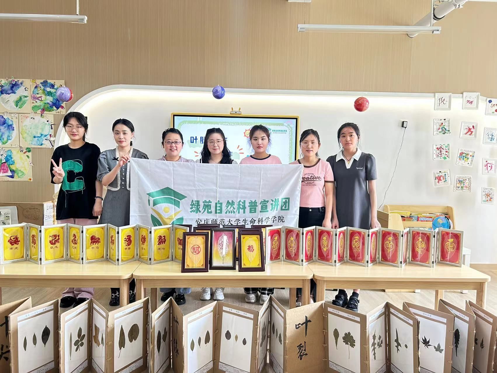 穆丹和张明珠老师带领的绿苑自然科普团队向小朋友展示了五颜六色的叶脉书签并介绍了书签的制作过程。小朋友认真学习,动手制作了属于自己的叶脉书签。