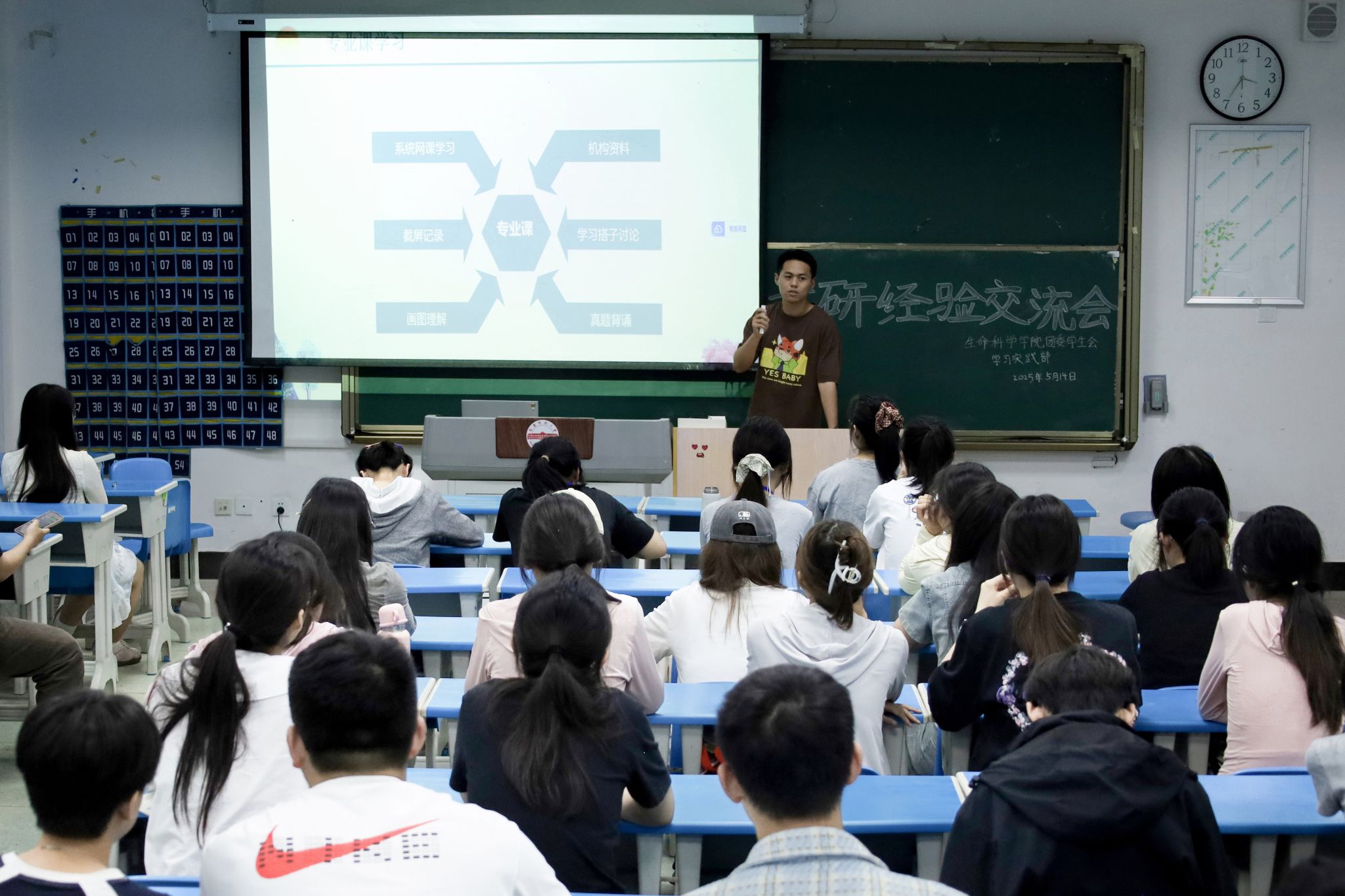 掌握学习方法、挑选资料选择、调适备考心态……5月14日,为助力更多学生科学备考,生命科学院在G101室举办考研经验交流会,邀请了三位2021届考研高分学生分享经验,吸引了学院各年级50余名学生参加。
