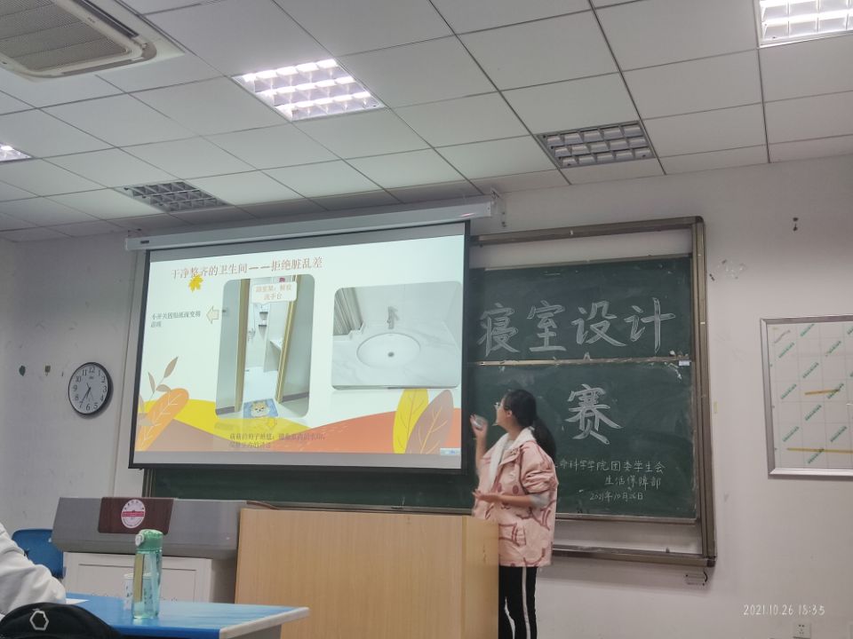 为了促进良好室风建设,强化良好卫生习惯养成,提高寝室生活质量,培养同学间团结合作精神,英国365集团公司于10月26日下午在G103教室举办了“我居我饰”寝室设计大赛总决赛。