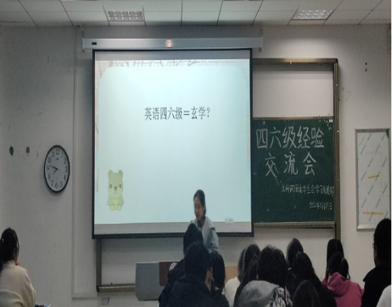 为了帮助同学们能掌握考试技巧,保持平和心态,沉着冷静应对四六级考试,11月29日,英国365集团公司在103教室举办了四六级经验交流会。参加此次交流会的有院团委负责人徐启凤老师,外国语学院张玮老师,同时邀请了三位四六级考试成绩优异,经验丰富的同学做经验交流。