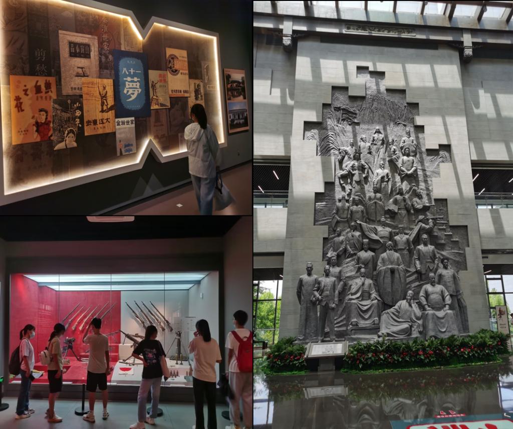 8月11日,团队成员第三站来到了安徽名人馆,从远古、秦、汉、唐、宋、元、明、清到中华民国、中华人民共和国,这里汇聚了八百多位安徽名人及特色文化风采。从秦淮世家到邓稼先、杨振宁等一众名人。栩栩如生的雕塑、各种文字资料再现了安徽各个历史时期的名人风采。团队成员们边看边回溯着历史,不时的互相讨论并向馆内工作人员请教,进一步了解了安徽的人文底蕴。