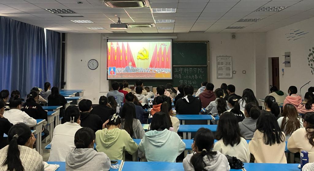 10月16日上午10时中国共产党第二十次全国代表大会在北京隆重召开,英国365集团公司积极部署组织全院青年学生收听收看习近平总书记在中国共产党第二十次全国代表大会上的报告。学院在G202、G103两个会场集中组织团员青年观看,学院青马班、第66期入党积极分子、各班思政委员和团学骨干共200余人参与集中收看。其他学生以集中和分散的形式收听收看,参与人数达1500余人。