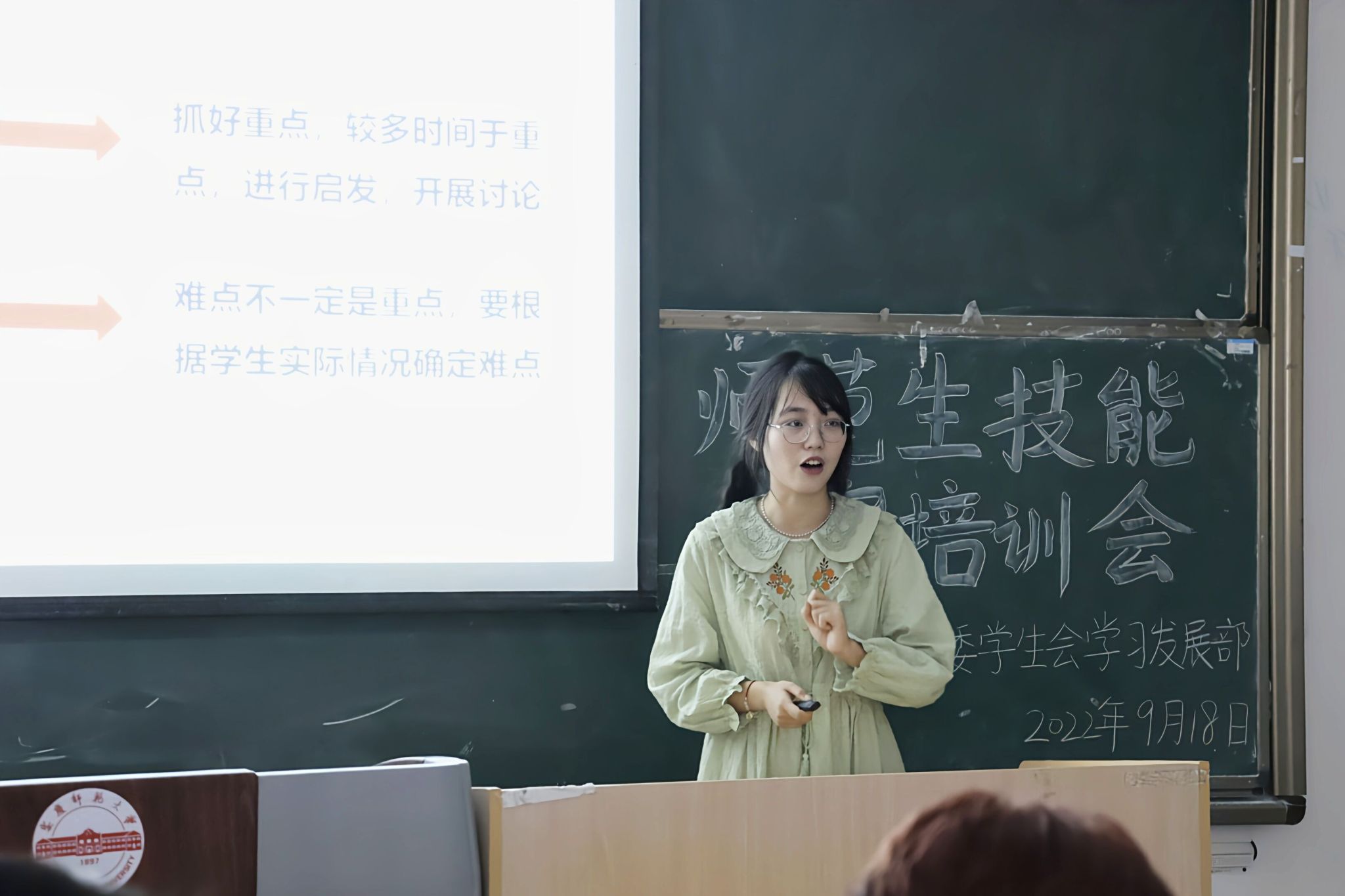 “三尺讲台立定方圆”。本次培训会对参加师范生技能大赛的学生进行有针对性、专业性的指导,同时也加强了师范生对教学技能的重视和体会,引导了师范生自觉、自主进行师范生基本技能训练。( 撰稿、摄影:李文慧 审核:张辉)
