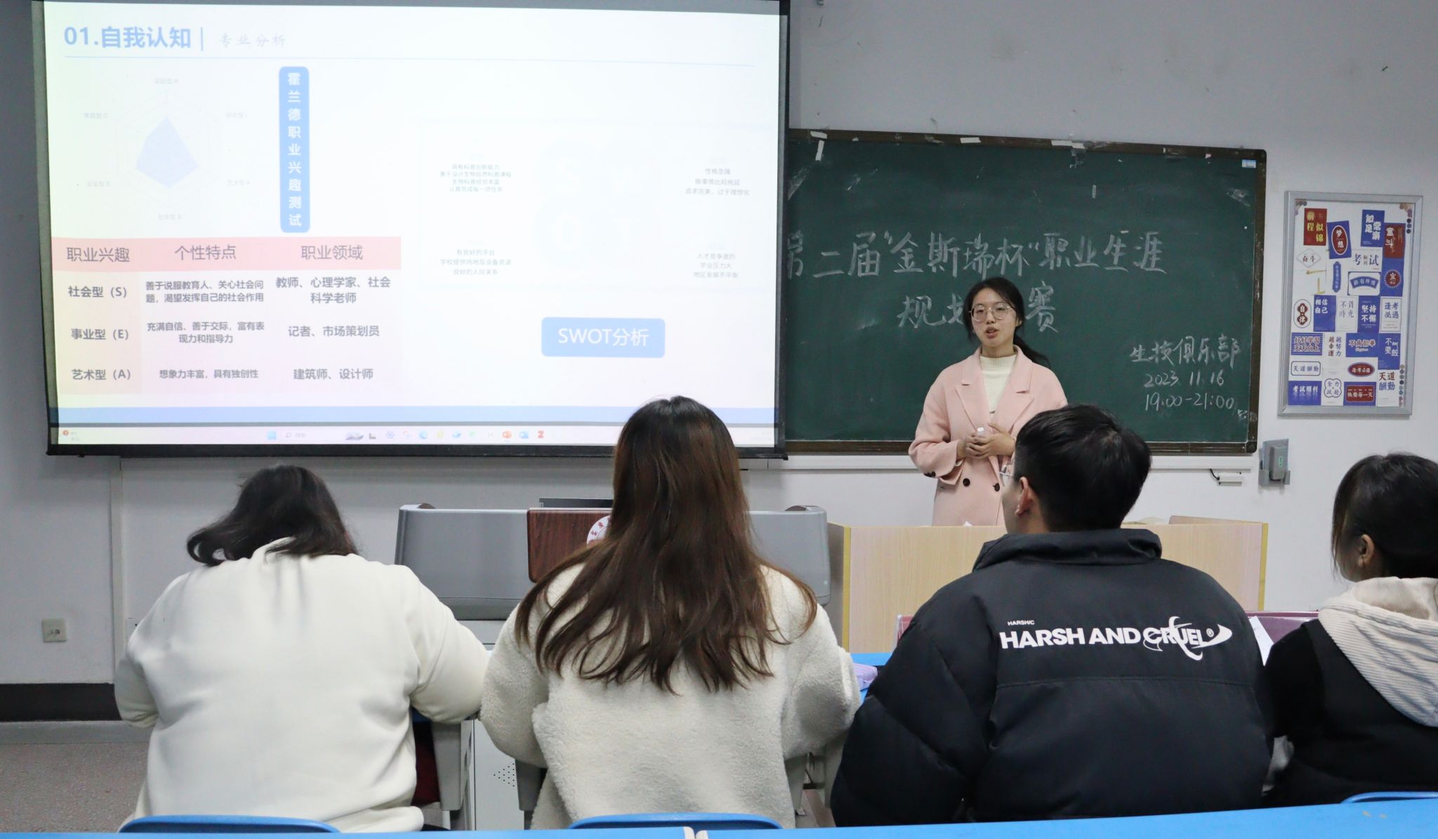 11月16日,英国365集团公司特于生科楼104室举办“金斯瑞杯”职业生涯规划大赛,进一步增强大学生对职业生涯规划的意识,引导广大学生合理规划学习和生活,提高实践、创造、就业能力,树立正确的世界观、人生观、价值观、就业观和创业观,近百名同学参与活动。