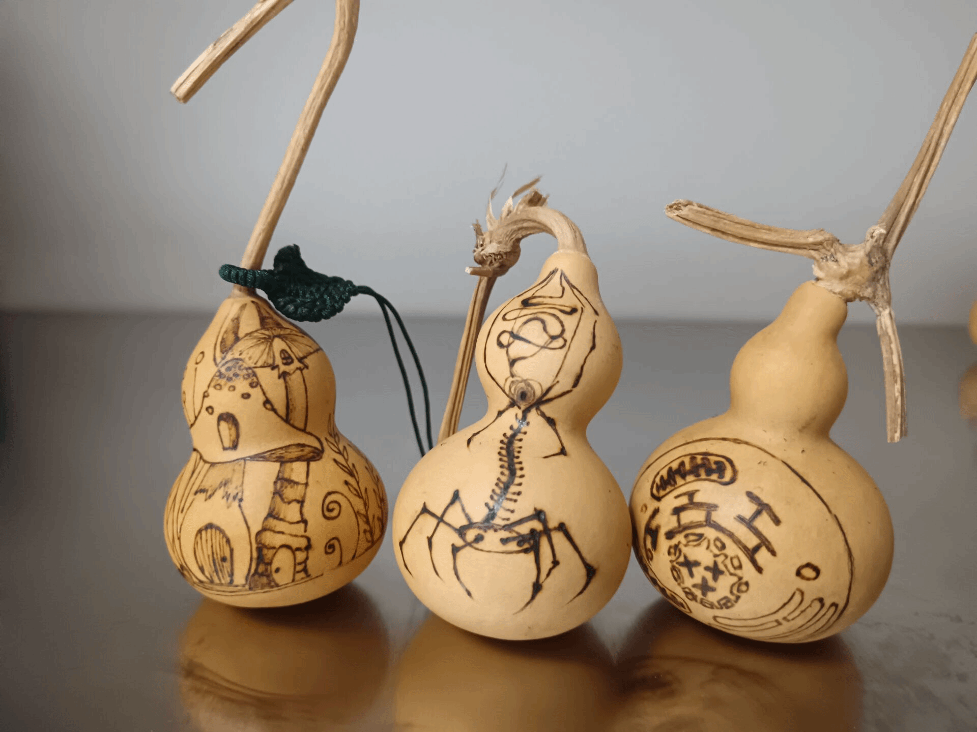 蘑菇、噬菌体、细胞……电火闪烁之间,烙画团队突破了以往中国画题材的限制,将烙画技艺与生物科学相结合,通过在葫芦上进行绘画,创作出内容丰富的生物科普作品,实现了在传承非遗文化的同时,让科学知识潜移默化地深入人心。