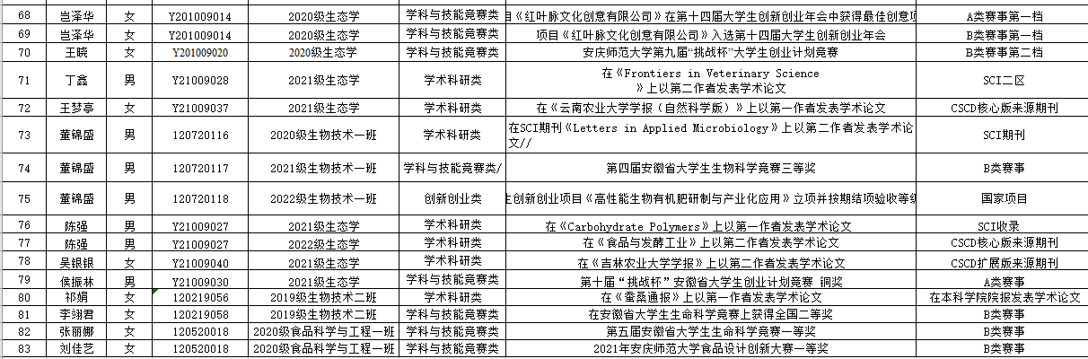 根据《365英国上市公司在线学生实践和创新成果奖励办法(修订)》 校政字〔2022〕23号文件精神,经学生本人申请,学院审核,现将2021-2022学年学生实践和创新成果奖拟推荐名单公示如下: