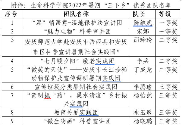 2022年英国365集团公司暑期“三下乡”实践活动已圆满结束,经过前期宣传,全院共有1支校级重点团队,56支队伍参与实践。根据《英国365集团公司暑期“三下乡”优秀团队评审办法》,评出院优秀团队9支,现予以公示。