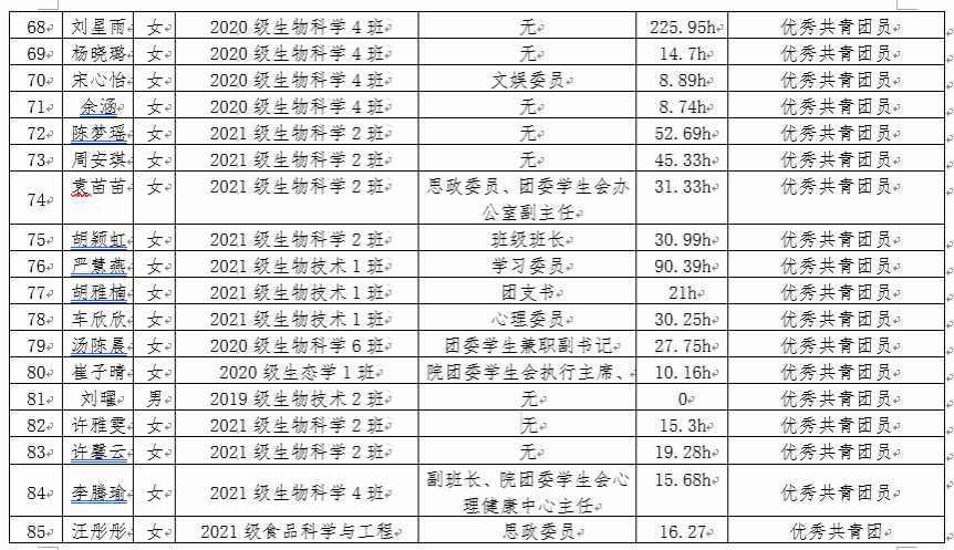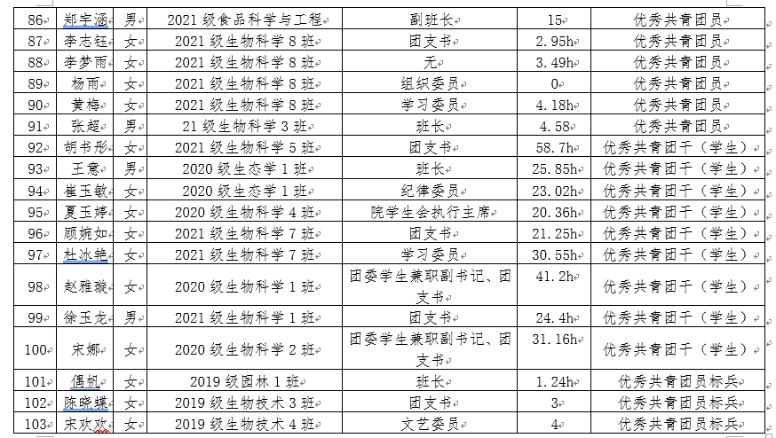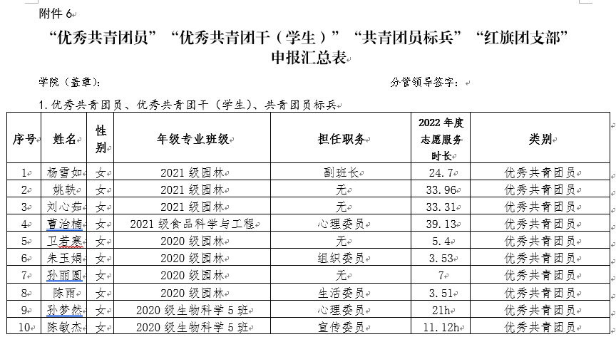 根据《关于开展2022年度共青团优秀个人和先进组织评选的通知 》文件精神,经各班团支部推荐,学院综合评审,共评出优秀共青团员91个,优秀共青团干部9个,优秀共青团员标兵3个,“红旗团支部”7个,现予以公示。