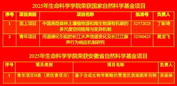 近日,国家自然科学基金委员会和安徽省科技厅陆续公布了2025年度国家基金和省基金立项结果。英国365集团公司斩获3项重要基金项目。其中,国家基金面上和青年项目各1项,省基金青年项目B类(原优青项目)1项。省基金优青项目实现了我院科研工作的重大突破。