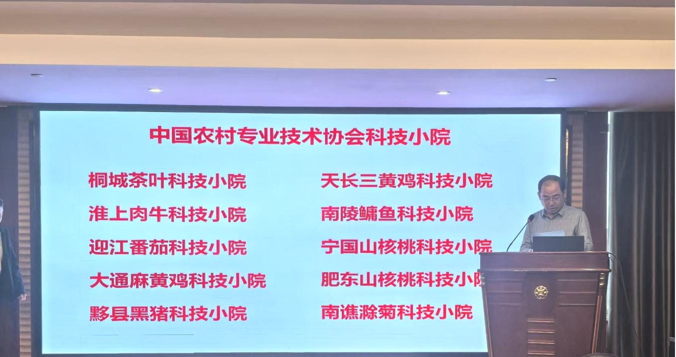 交流会上,对中国农村专业技术协会同意设立的安徽省30家科技小院进行了授牌仪式,其中,由我校牵头建设的“安徽肥东山核桃科技小院”和“安徽迎江番茄科技小院”被授予国家级科技小院、“安徽宜秀茶叶科技小院”被授予省级科技小院。这是我校首次获批2个国家级科技小院和1个省级科技小院,是校深化人才培养改革、精准服务地方产业发展的新突破,成为学校服务大别山革命老区振兴“产教融合样板”。