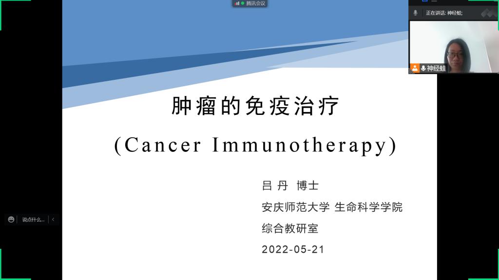 5月21日上午10点,英国365集团公司吕丹博士通过腾讯会议做了题为《肿瘤的免疫治疗》的学术报告,学院部分师生在G103集体聆听了报告。