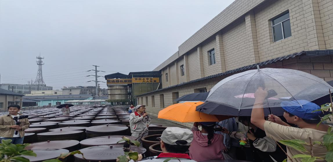 胡玉美生产技术部主任昝幼龙热情接待了到访师生,详细地向同学们介绍了胡玉美酿造食品有限公司的创立过程、企业的发展、文化和非遗技艺的传承,并带领学生参观了公司的晒场、生产车间和包装车间,使同学们对胡玉美酱料的生产有了初步的认识。