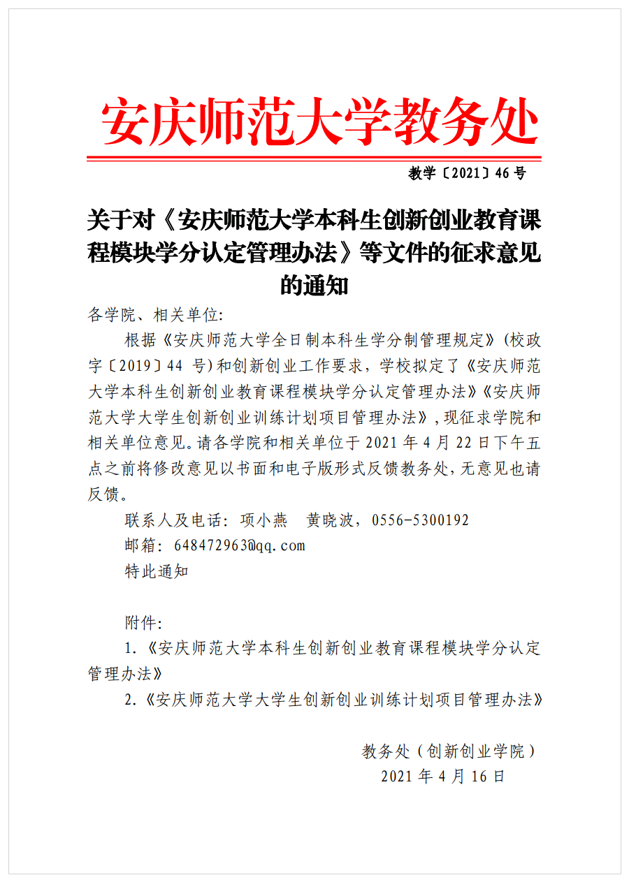 关于对《365英国上市公司在线本科生创新创业教育课程模块学分认定管理办法》等文件的征求意见的通知