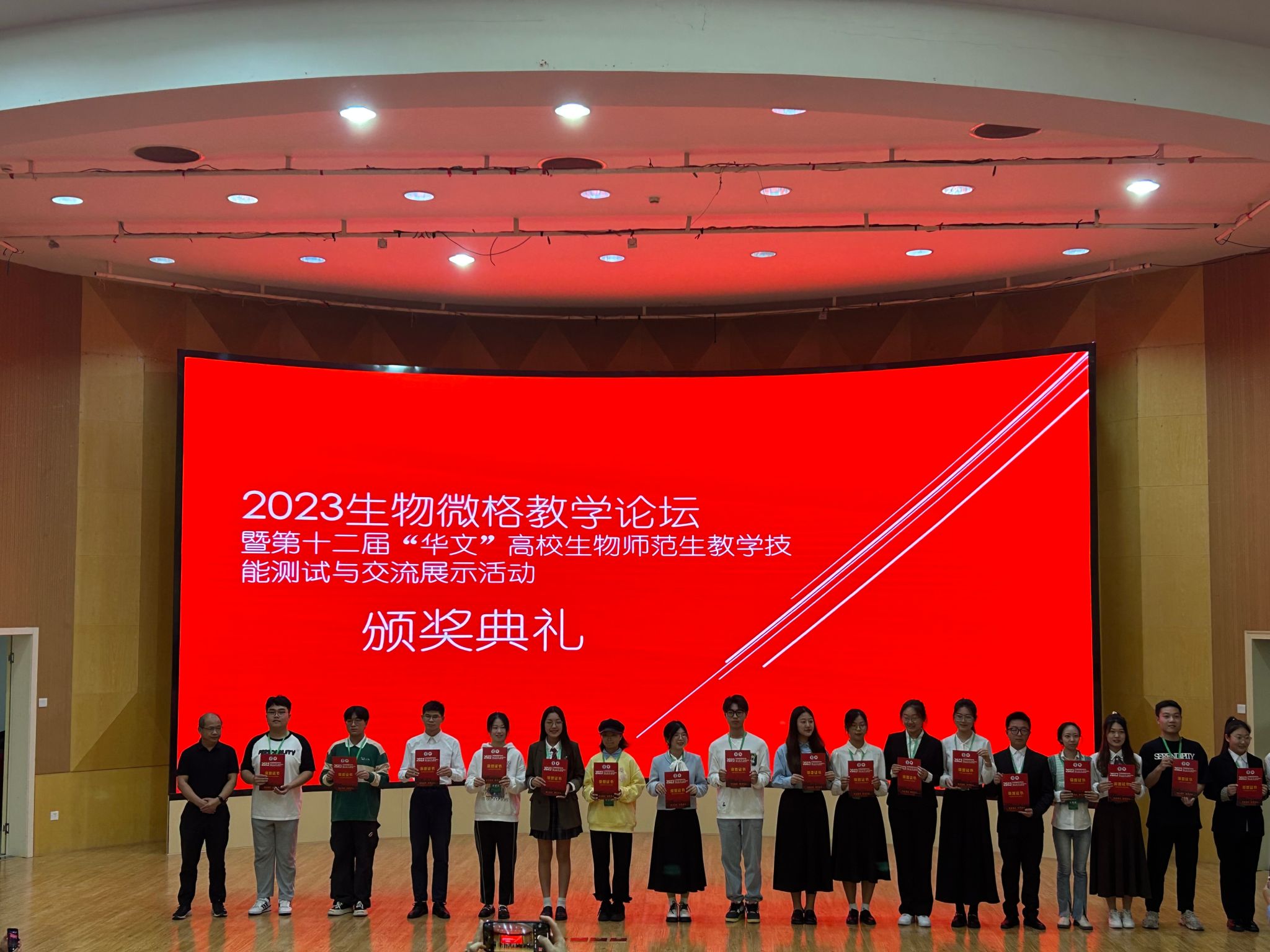 “华文”高校生物师范生教学技能测试与交流展示活动是测试师范生专业能力、促进师范生交流成长的全国性活动。本届比赛由中国教育技术协会微格教学专业委员会主办、江西师范大学承办,共有来自全国近80所高校的150余名教师及450余名师范生参加。活动分为教学设计测试和教学技能测试两项赛事,教学设计测试由多名评委对选手提交的教学片段设计文稿进行评选,教学技能测试内容包括说教学设计思路、现场教学展示和答辩三个环节。比赛共设置一等奖、二等奖、三等奖及优秀奖奖项。