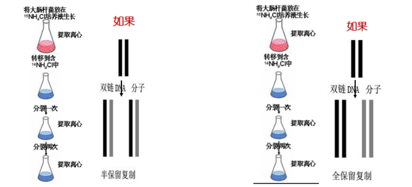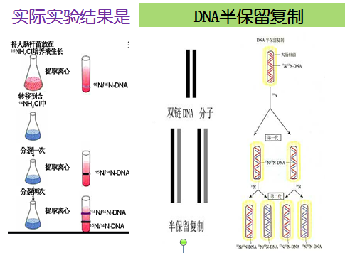 我们把这种形成的DNA分子一半是新的,一半是旧的,这种复制方式称为半保留复制。因为每个新形成的DNA分子都保留了亲代的一条链。