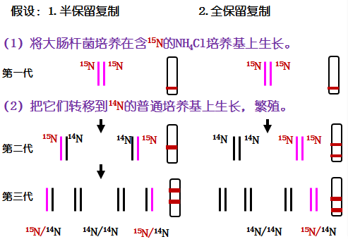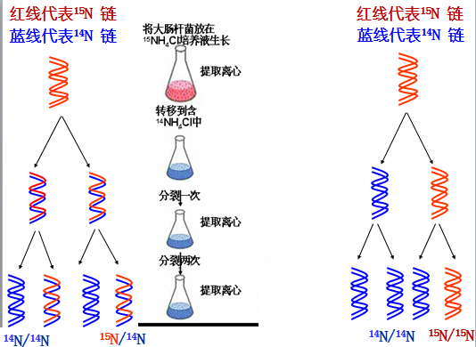 1.半保留复制:形成的分子一半是新的,一半是旧的