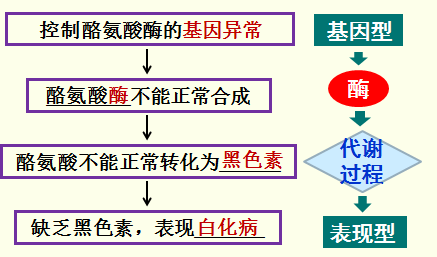 结论1:基因通过控制__酶__的合成来控制_代谢过程_,进而控制生物体的性状。