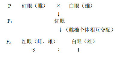 与孟德尔实验作类比,讲解摩尔根实验。比较相对性状(显、隐性性状)、实验过程,要求学生根据分离定律预测实验结果,再进一步指出虽然结果红眼与白眼的个体数比例为3︰1,但是有性别上的差异。