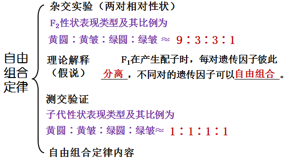 控制不同性状的遗传因子的分离和组合是互不干扰的;在形成配子时,决定同一性状的成对的遗传因子彼此分离,决定不同性状的遗传因子自由组合。