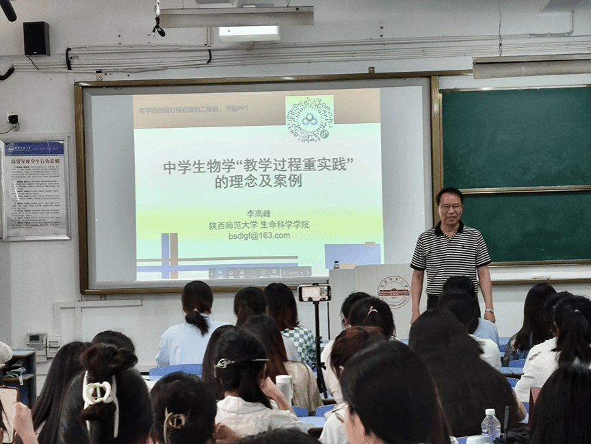 报告会上,李高峰教授首先从中学生物学课程标准的变革入手,深入阐述了从“生物”到“生物学”这一转变的重大意义。他指出,这一变化不仅体现了学科内容的深化和拓展,更突显了实践在教学过程中的核心地位。