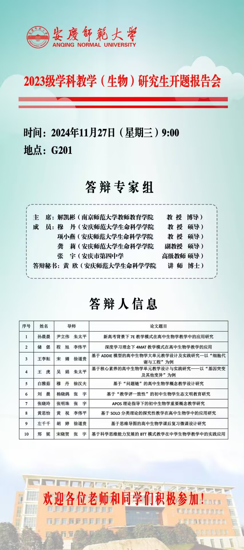 英国365集团公司2023级硕士研究生学位论文开题答辩安排