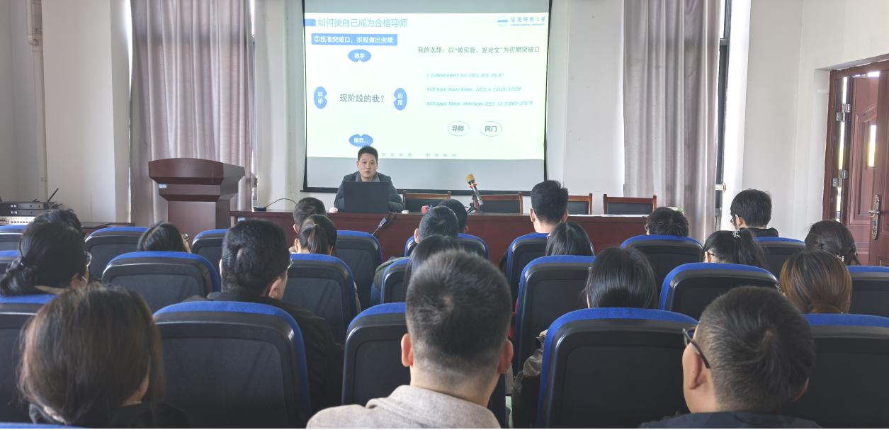程旭围绕“如何做好一个导师”主题,以近年自身发展为例,从找准自身定位、做出学术业绩、寻求志趣伙伴、团队共拓业务、构建师生共同体等方面层层剖析,分享经验。他指出,新导师要主动了解学院文化与学科特色,积极参加学院活动,多与同事交流,尽快加入科研团队,快速融入学院环境,共发展共提升。在交流中,他着重阐述了构建高效师生共同体的重要性,强调作为导师需躬身实践,亲手指导学生实验的实操环节,实验室要养成“传帮带” 的优良育人作风,助力学生在实践中成长成才。此外,他还分享了通过规范学生日常管理制度和优化奖励机制的方法,以充分调动学生的学习积极性与主动性,为人才培养筑牢制度保障。
