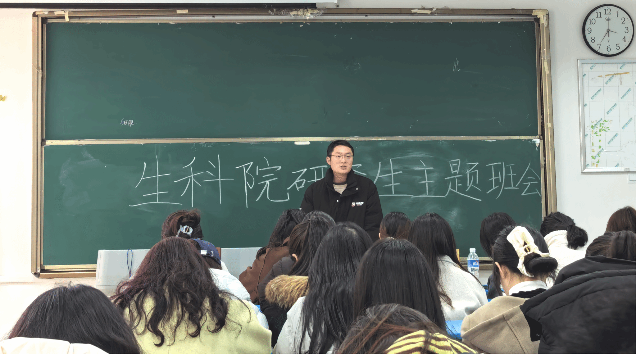 随后,翟玉山老师对答辩工作和就业事宜展开深入讲解。他详细阐述了毕业答辩的各项要求与流程,提醒研三学生严格把控毕业论文的进度和质量,认真对待每一个环节,确保顺利通过答辩。在就业方面,翟老师为学生们分析了当前的就业形势,鼓励大家积极拓宽求职渠道,把握各类就业机会。他强调,在求职过程中不可避免会遇到困难与挫折,但学生们要秉持“坚持不懈,砥砺前行”的精神,不轻易放弃,努力找到理想的工作岗位。同时,翟老师也鼓励低年级学生提前做好职业规划,为未来的发展早做准备。