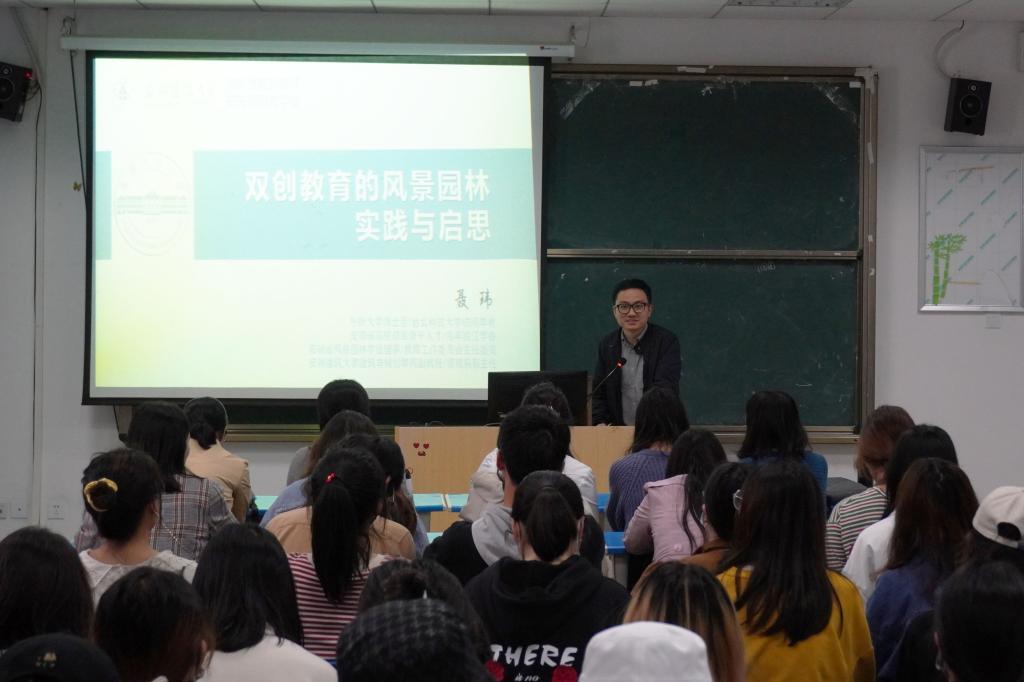 下午两校教师在G楼101室分别作了精彩的学术报告。聂玮副教授做了题为“双创教育的风景园林实践与启思”的报告,聂玮副教授分享了安徽建筑大学大学生创新育人理念、创新育人模式以及取得的成果。